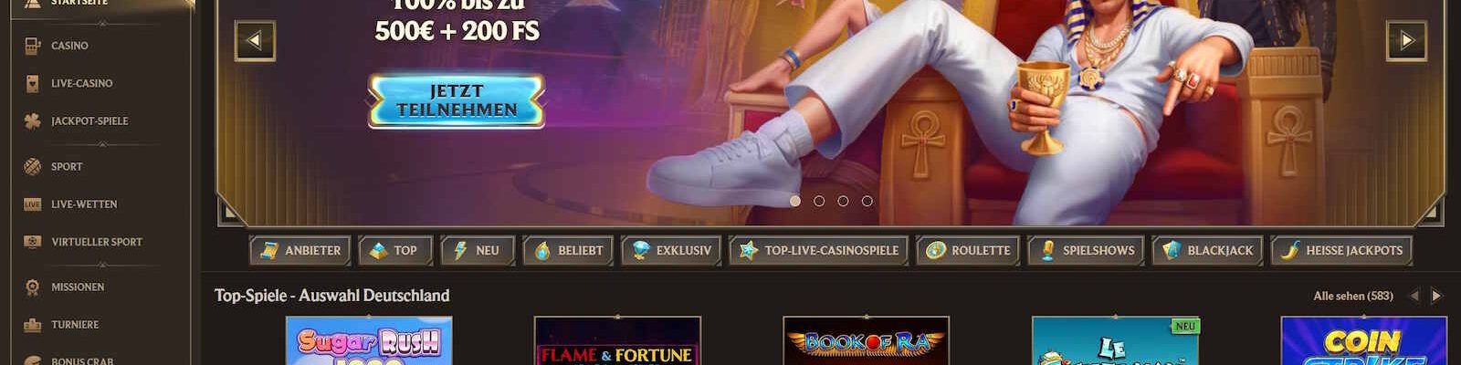 ➥ 100% Bonus bis 500 € + 200 Freispiele