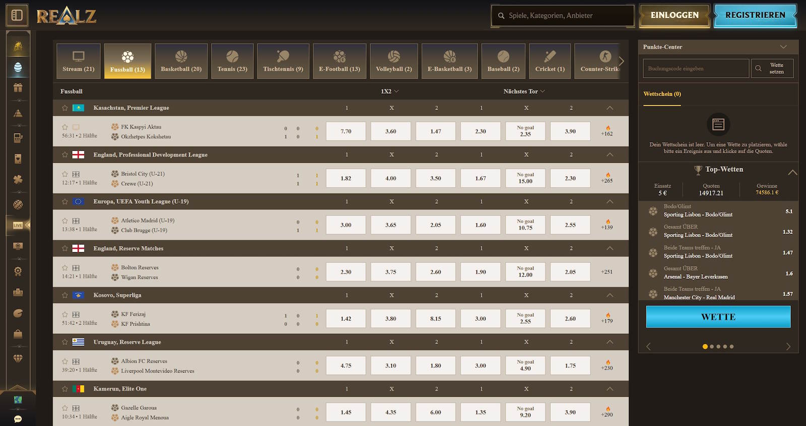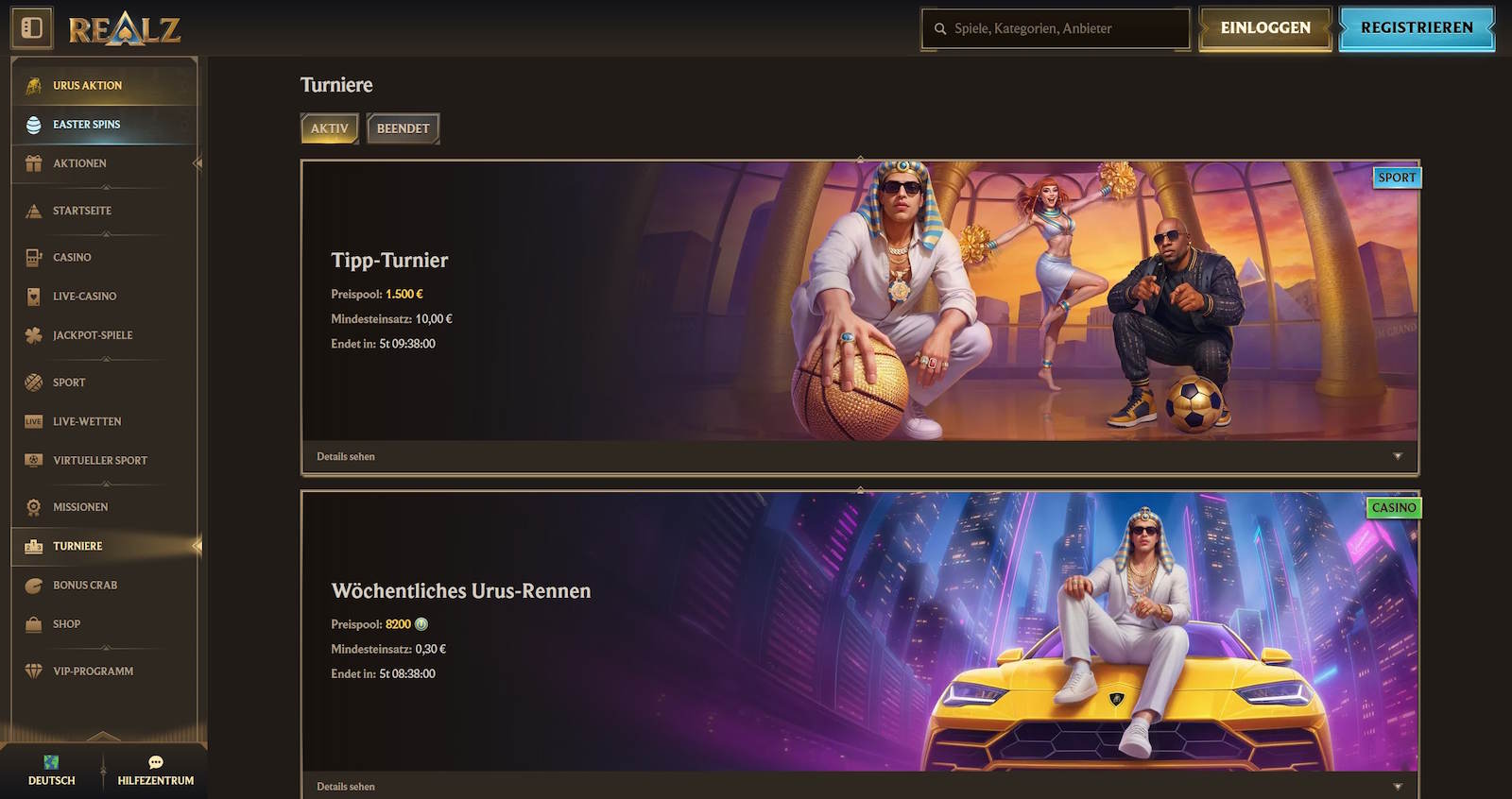 Im Realz Casino spielen Sie alle Online Casinospiele ohne Limits und Pausen. Sichern Sie sich jetzt bis zu 500 € Bonus + 200 Free Spins, und starten Sie mit Echtgeld ab 20 € Mindesteinzahlung durch.
