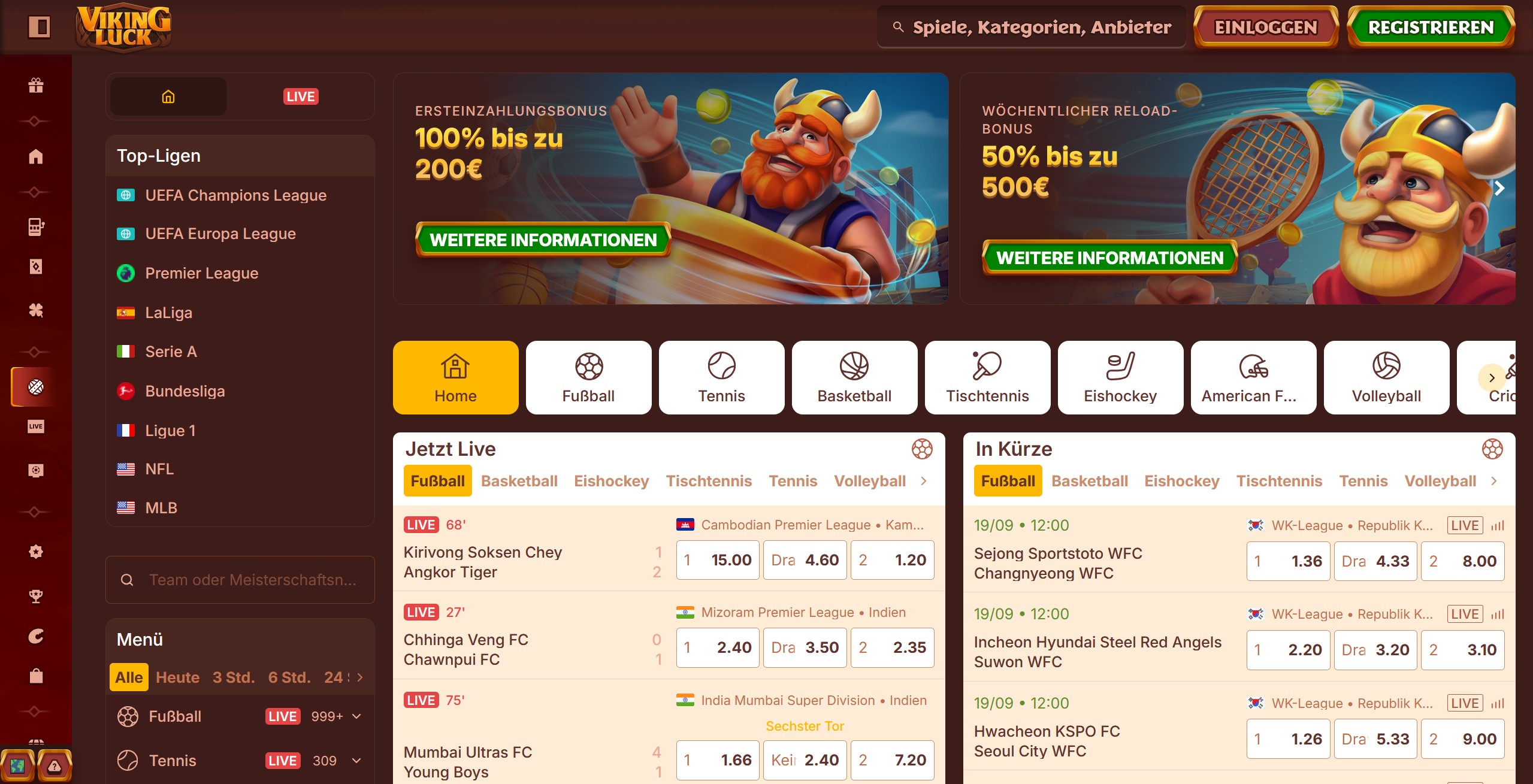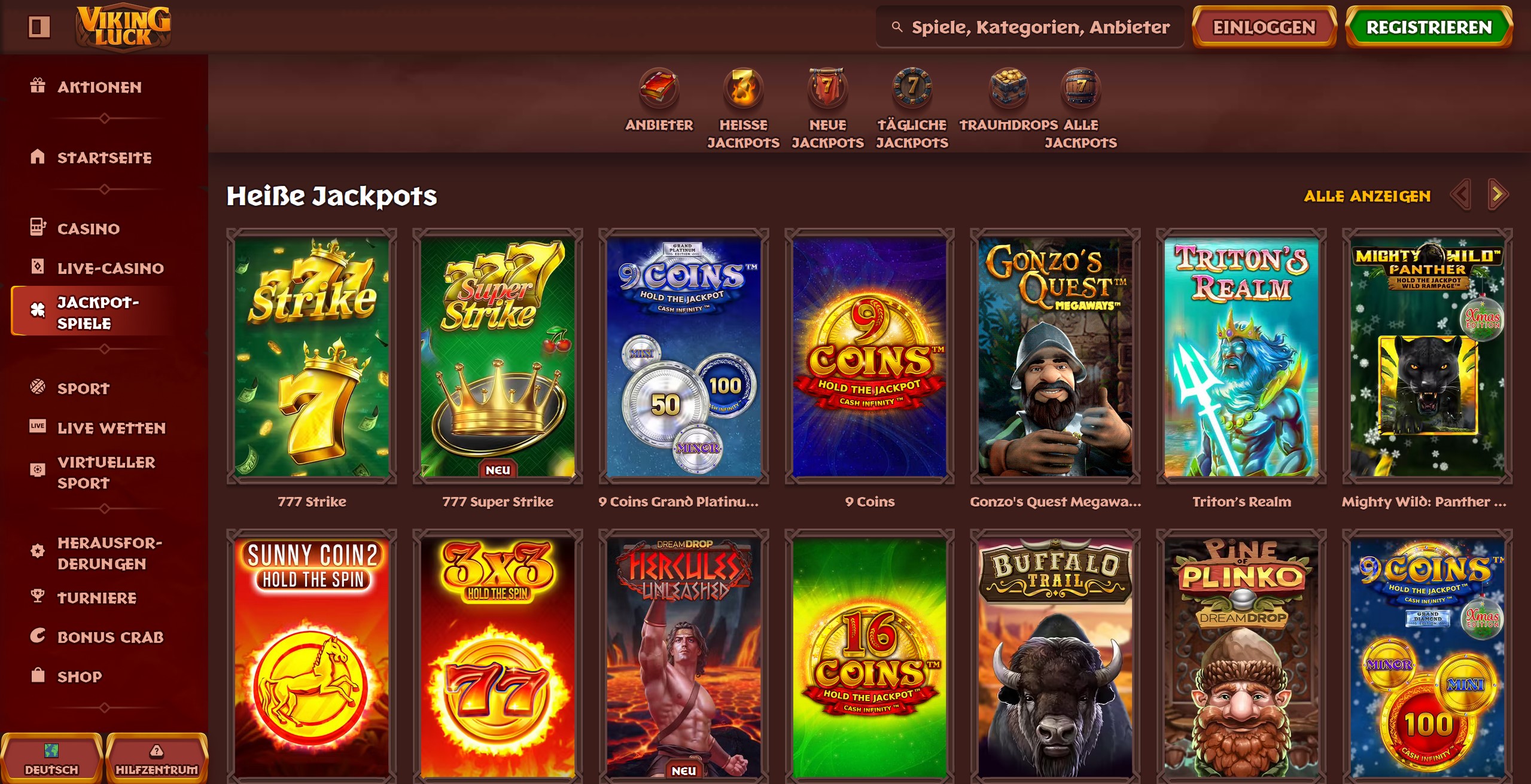 Im Viking Luck Online Casino spielen Sie alle Casinospiele ohne Einschränkungen und Pausen. Sichern Sie sich jetzt 300% Bonus bis zu 2500 € auf die ersten vier Einzahlungen und erhalten Sie 250 Free Spins. Starten Sie mit Echtgeld ab 20 € Mindesteinzahlung durch.
